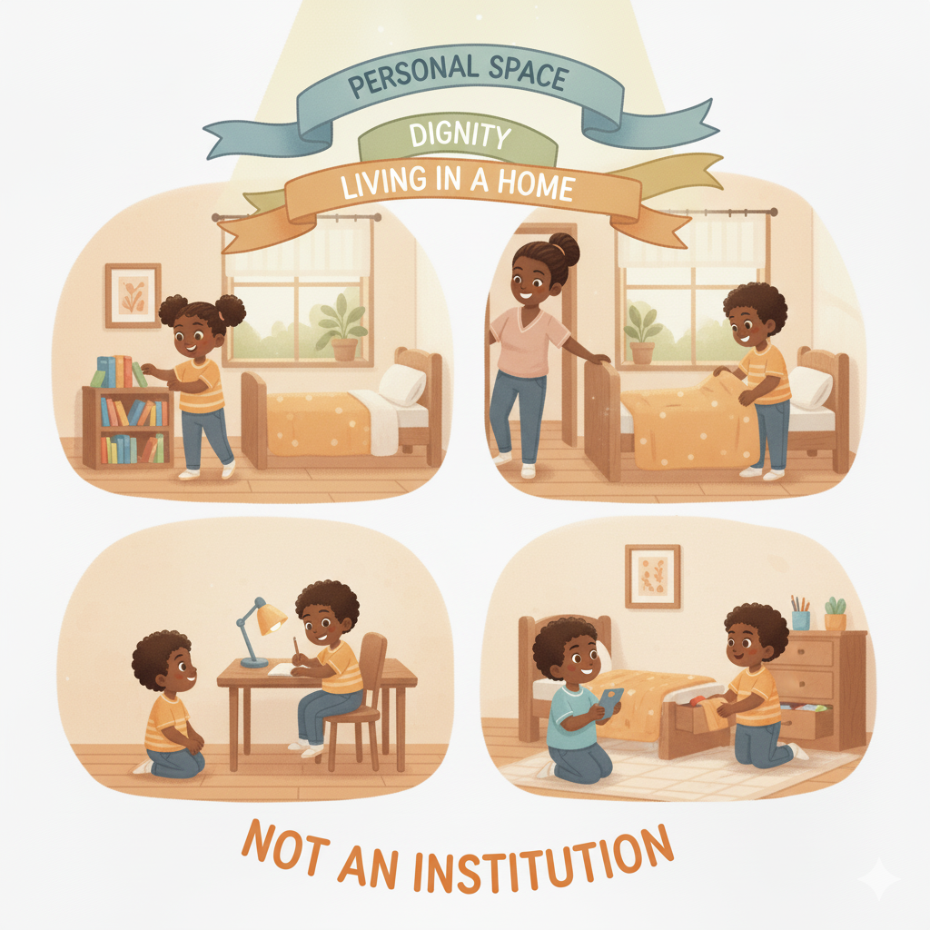 We're transitioning to a pod family system where groups of 6 children will live together in small, home-like environments. This approach has been proven to provide better emotional development, stronger relationships, and improved life outcomes.